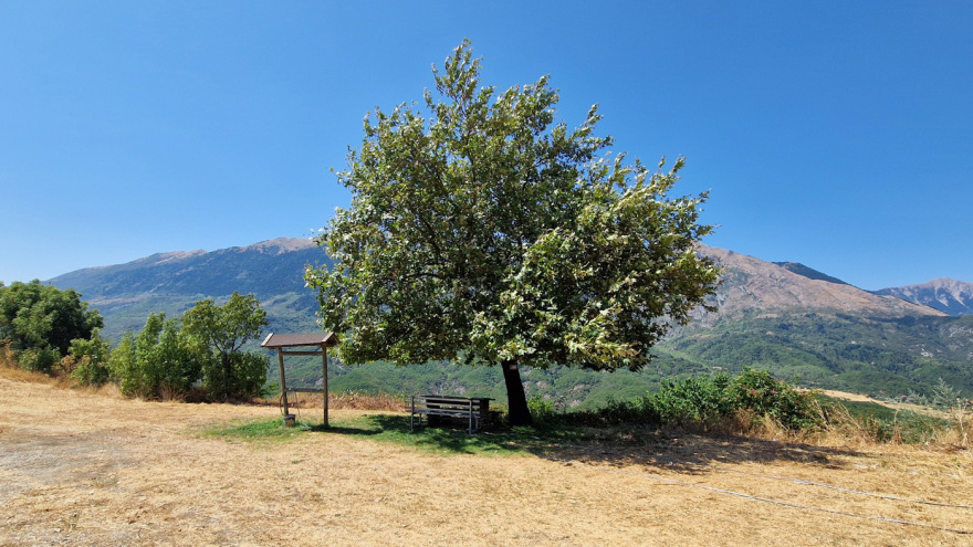 Πλάτανος στη θέση 'Κατσίκι' της Καστάνιανης, με θέα το όρος Μουργκάνα